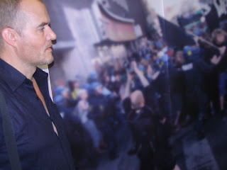 Søren Dahlgaard in front of his work "The Return of The Proud Danish Man" addressing gender issues in Denmark